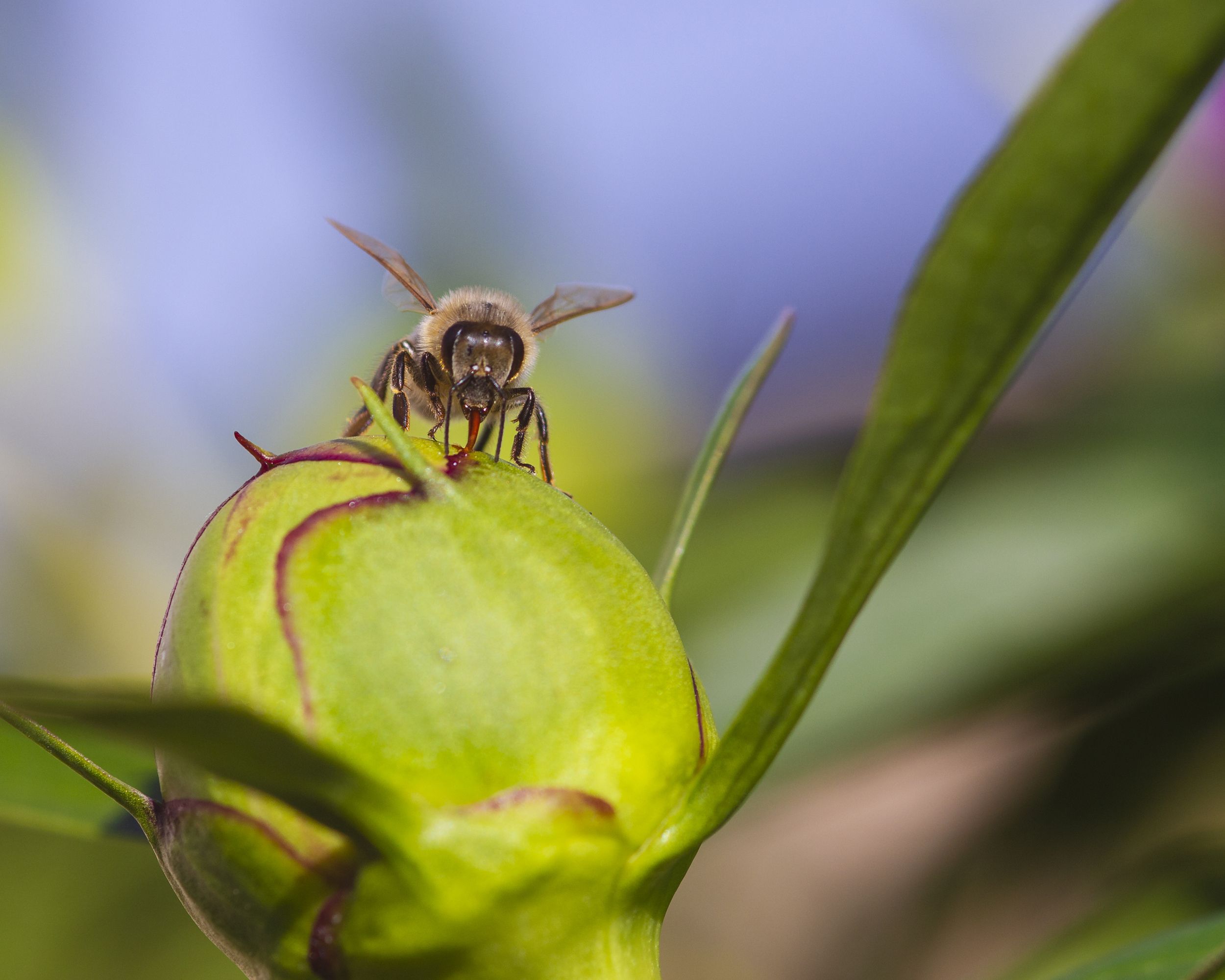 макро, природа, насекомые, пчелы, пион, бутон пиона, лето, Александр Кожухов