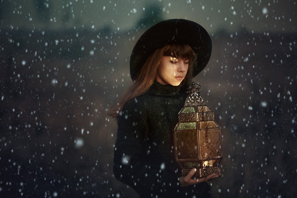арт, осень, фонарь, свет, цвет, шляпа, девочка, художественный, сказочный, волшебный,, Марина Кондратова