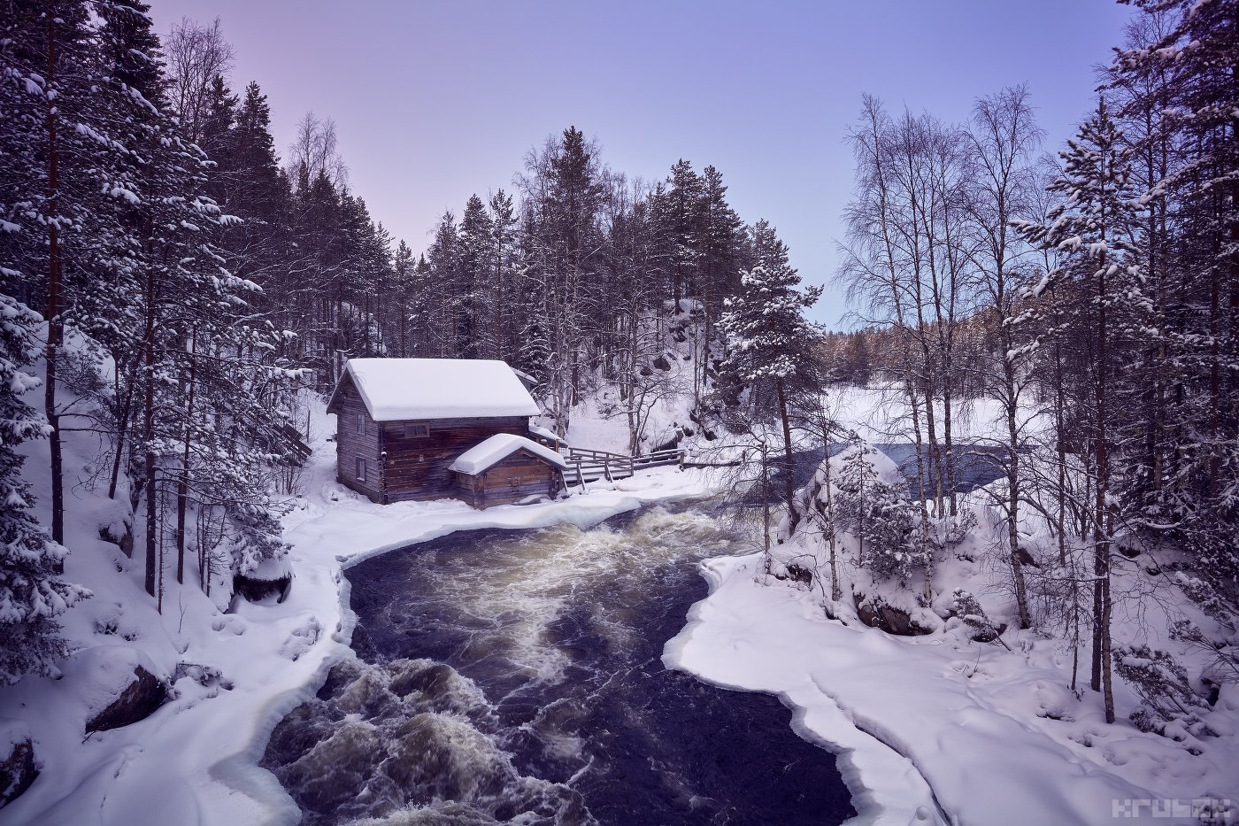 Один из самых известных видов национального парка Оуланка. Домик это бывшая водяная мельница, построенная в 1926 году и успешно проработавшая до конца 1940-х годов.