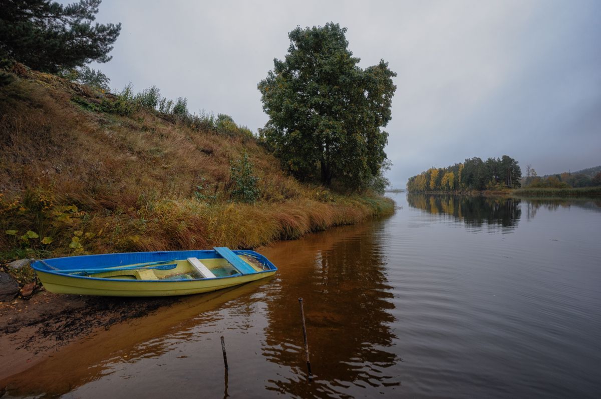 осень,река,вуокса,вода,лодка,пейзаж, Евгений Плетнев
