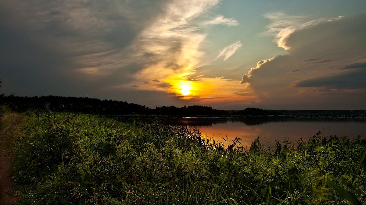 на холсте закат изображал.