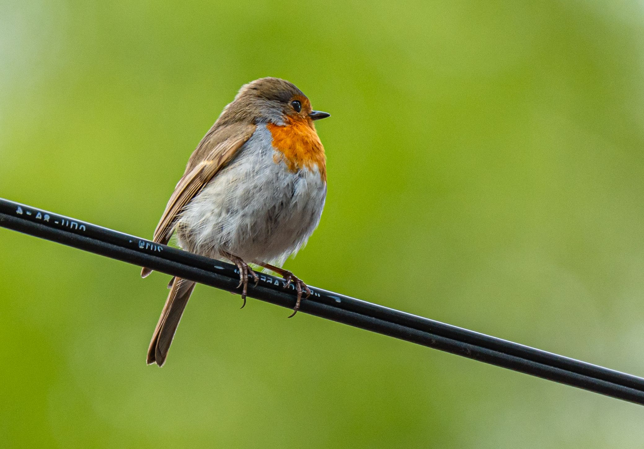 Фотосессия с зарянкой на проводе
