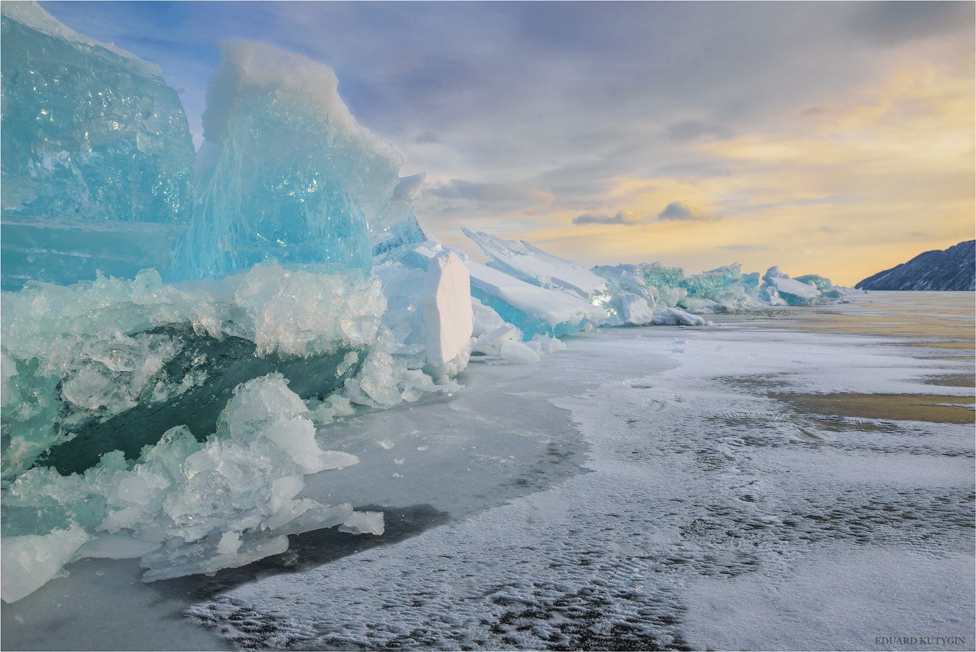 Посёлок расположен на берегу, здесь редкое для Байкала место с небольшим участком пологого берега, распадок из которого весной есть небольшой ручей и невероятной силы ветер! Этот ветер и создает огромный участок открытого льда, который просто поражает и срывает мозг, после небольших локальных ледовых полей Малого моря. В этом месте серьезные льды и сильные ветра, и соответственно рождаются большие торосы. Это второй объект для съёмок. Так же можно подняться на окрестные горы, что бы увидеть мир сверху. Ветер и солнце создают невероятный эффект полированного (шлифованного) льда. Увы, практически всю поездку нас преследовала пасмурная погода или рассвет/закат с дымкой в атмосфере. Узуры замечательное место, сюда хочется возвращаться и возвращаться.
