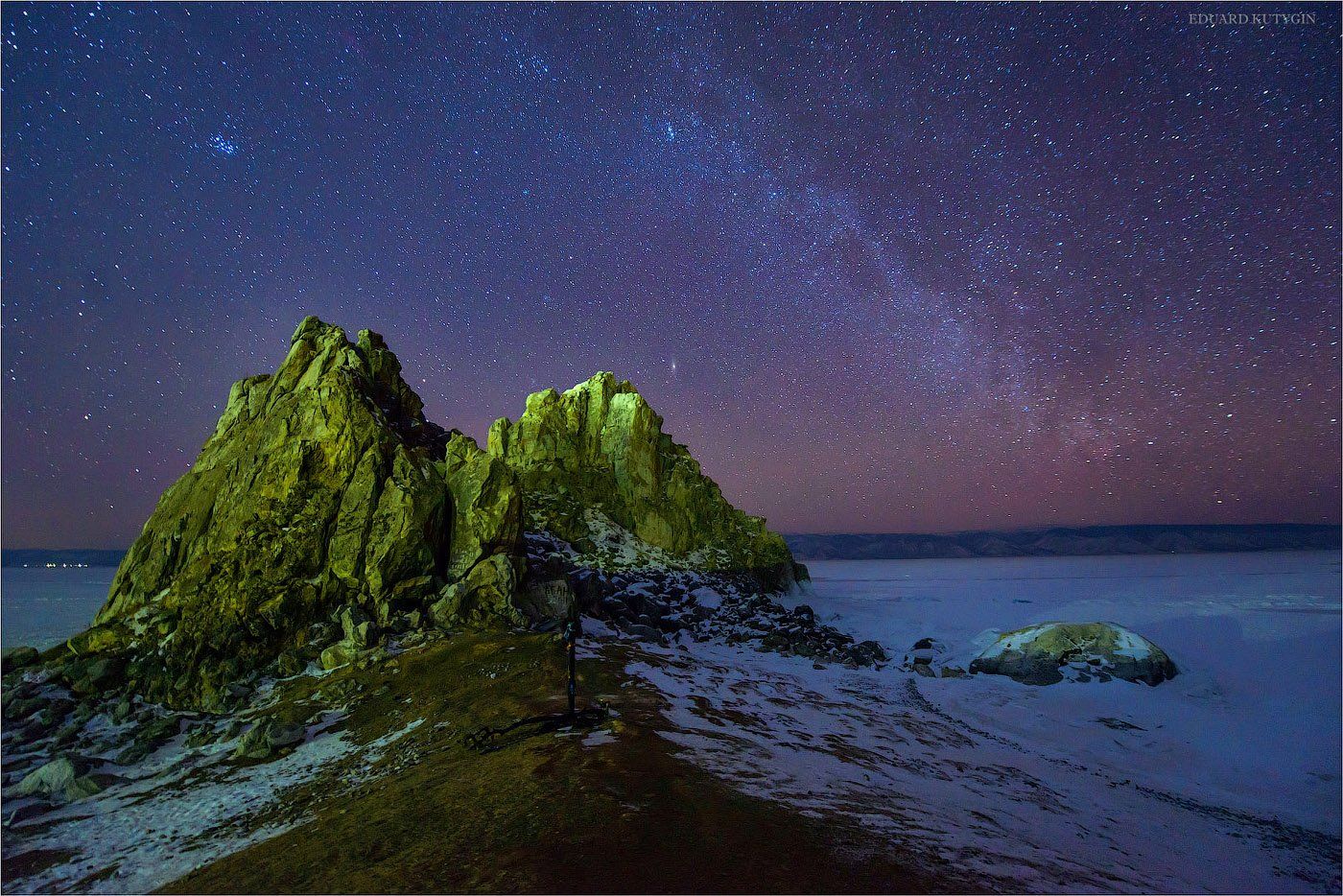 Байкал, посёлок Хужир, мыс Бурхан и скала Шаманка. 02.2018
