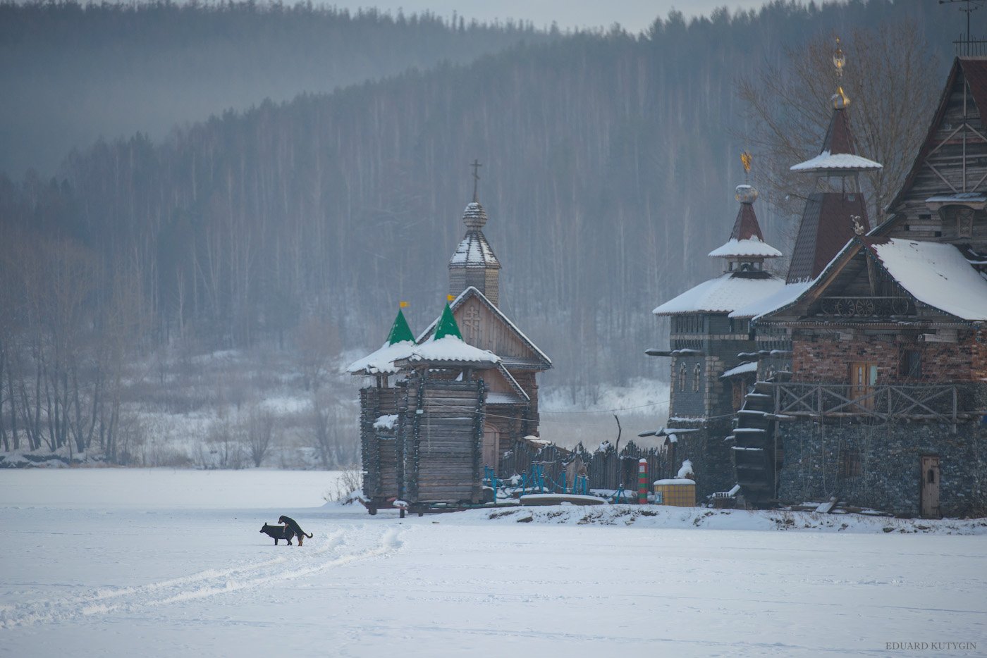 Эклектика города Сатки, Челябинская область. На снимке нет храма, это часть арт-парка "Дупло орла", расположенного на острове посреди городского пруда.