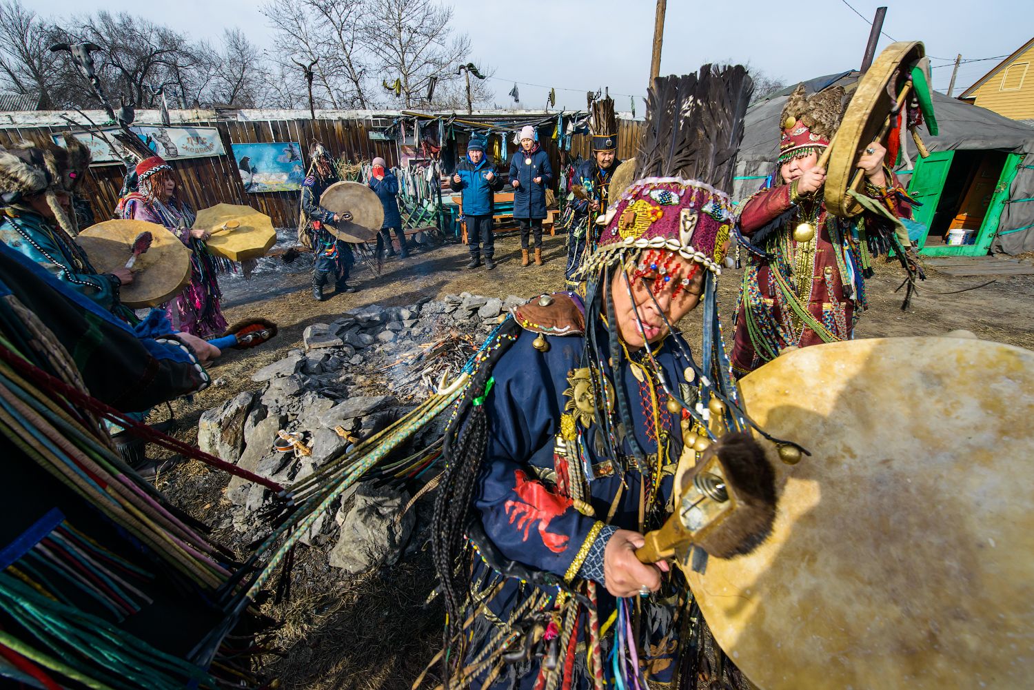 Обряд шаманов из клиники шаманов г. Кызыла при управлении верховного шамана Допчун-оола Кара-оола Тюлюшевича, посвященному дню весеннего равноденствия.