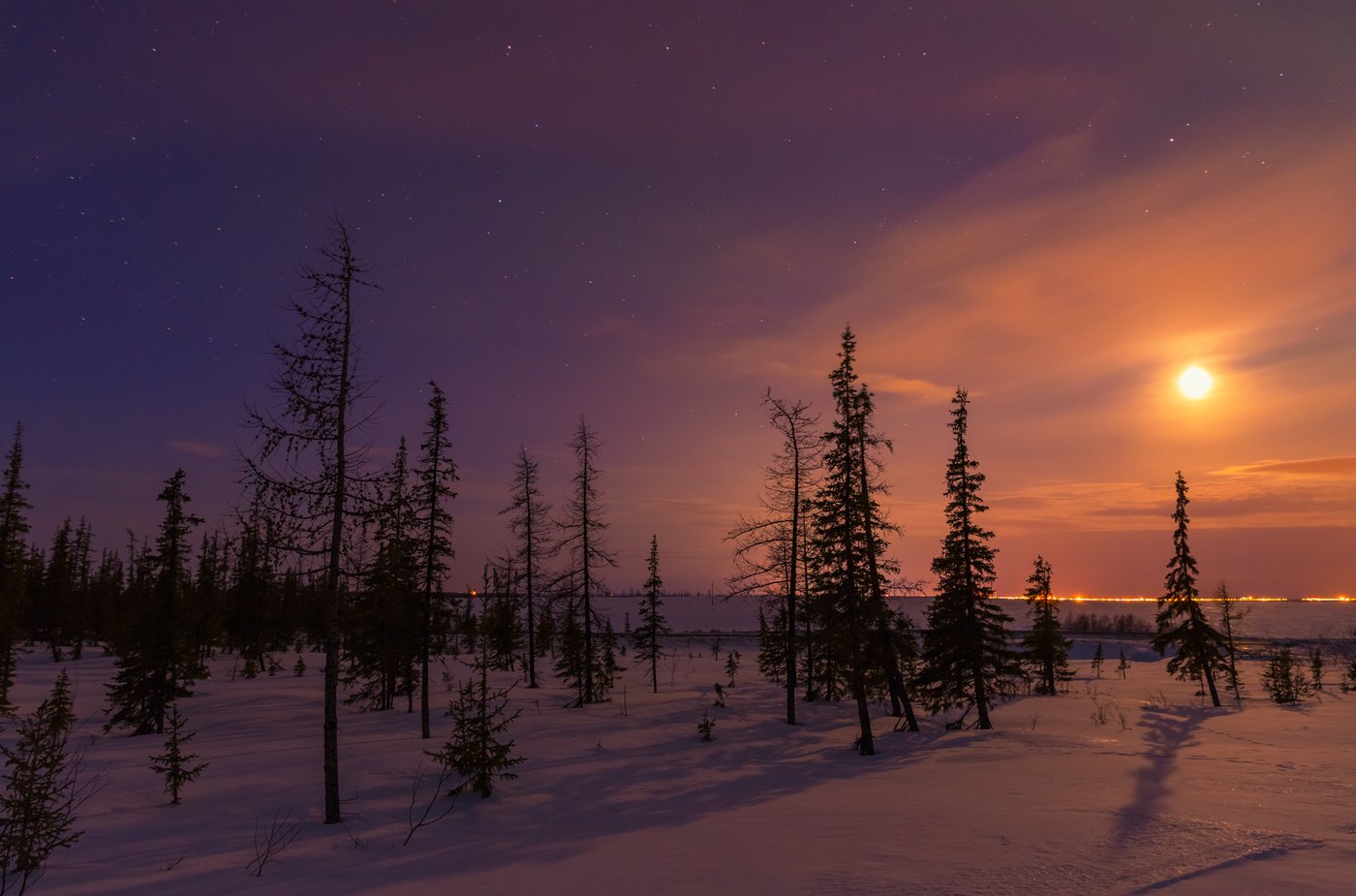 Звезды, Луна, Ночь, Север, Сибирь, ЯНАО, Евгений
