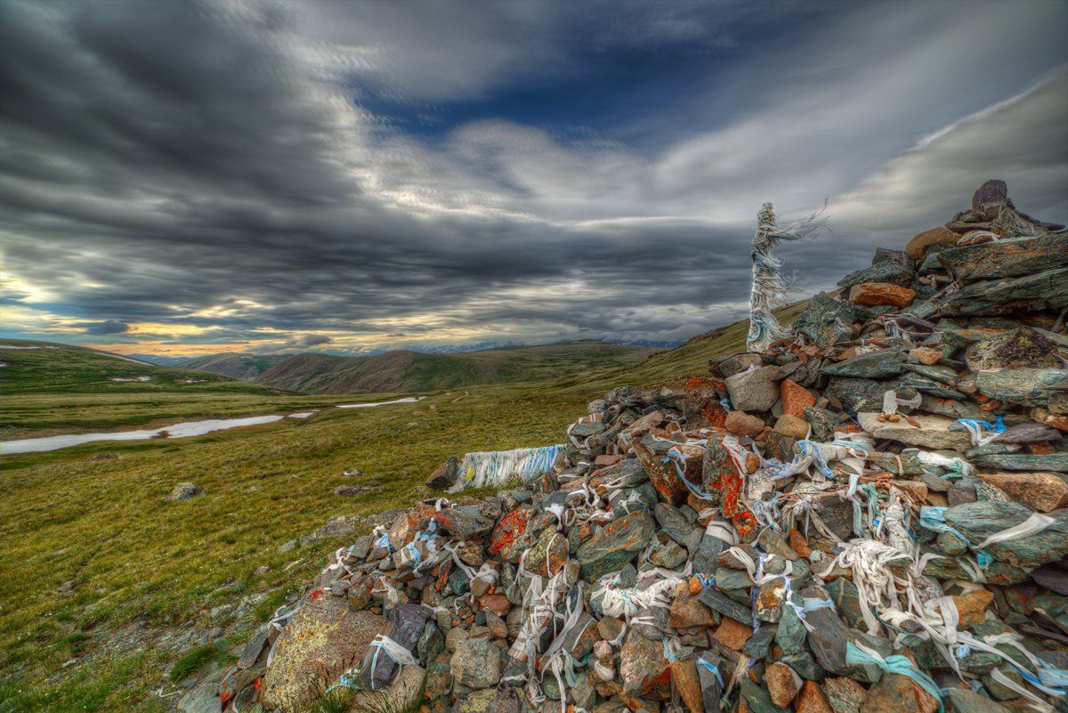 Далеко до священной горы Кайлас, не всякий человек дойдёт. Но если Дух внутри живой, то этой гору можно сделать самому. Единоверцы помогут вырастить эту гору буквально по камушку. Молитвенные ленточки освятят груду камней. Дух Гор сделает её вечной. Россия, республика Алтай.