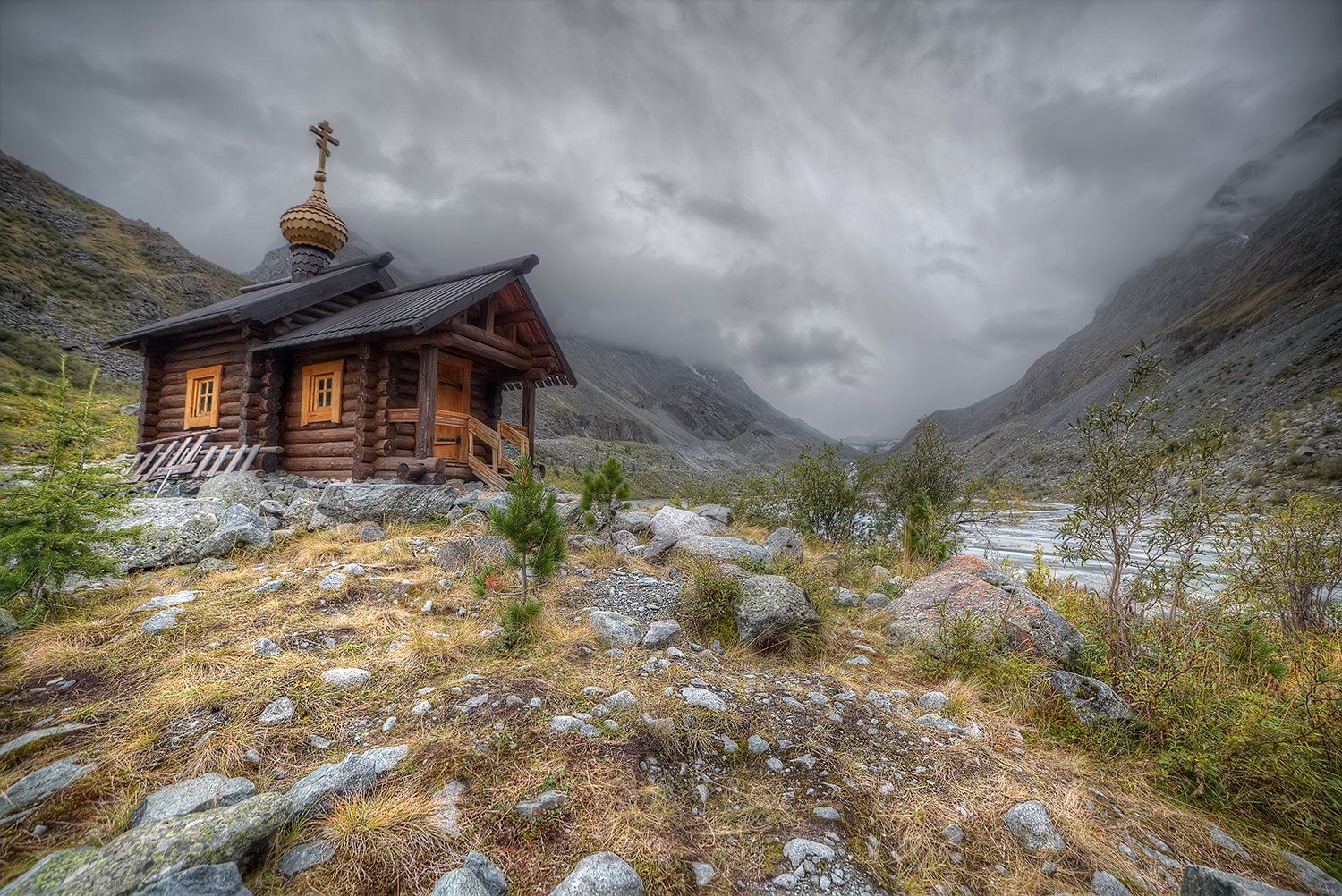 На широкоугольник снимали? Прекрасный кадр, но вот часовня, к сожалению, несколько завалилась... :( Находясь рядом с краем кадра, очень бросается в глаза. Попробуйте в ФШ выправить