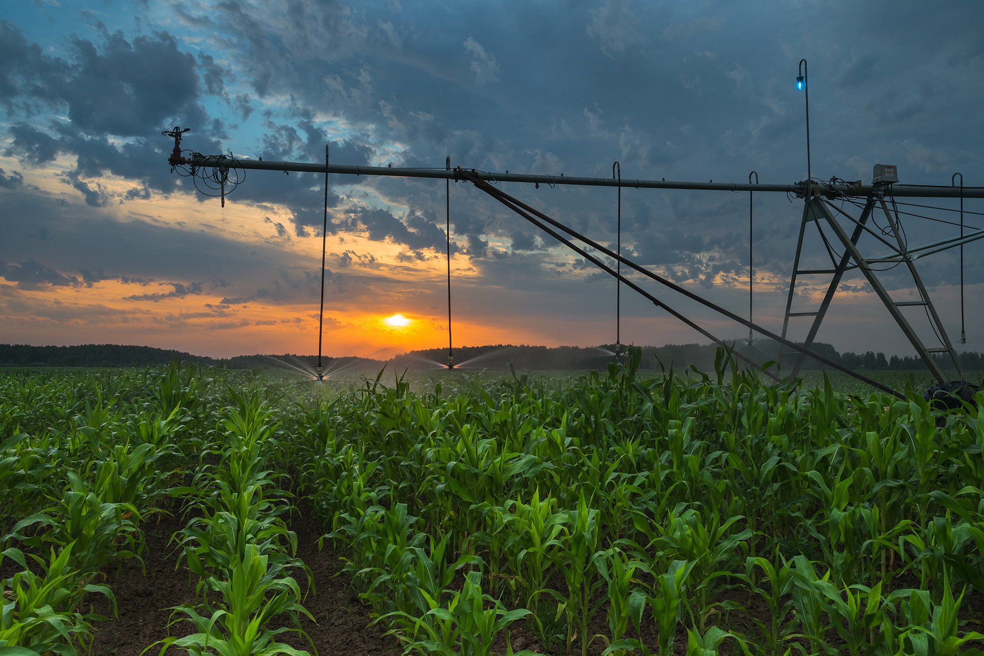 рассвет, солнце, поле, кукуруза, автополив, Алексей Чекалев