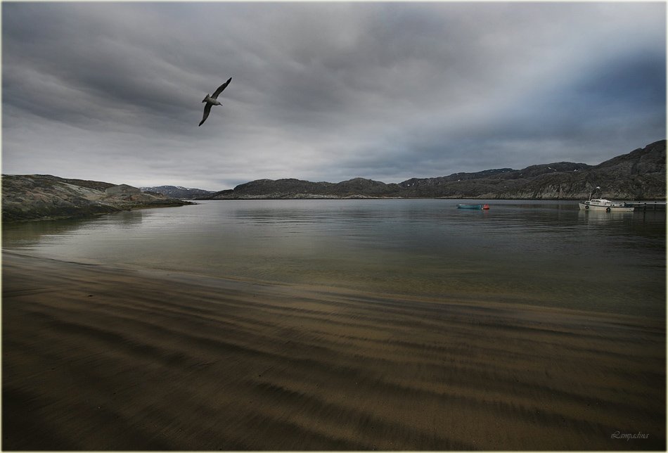 баренцево море , малая немецкая бухта, чайка, патруль, отлив, lampadina