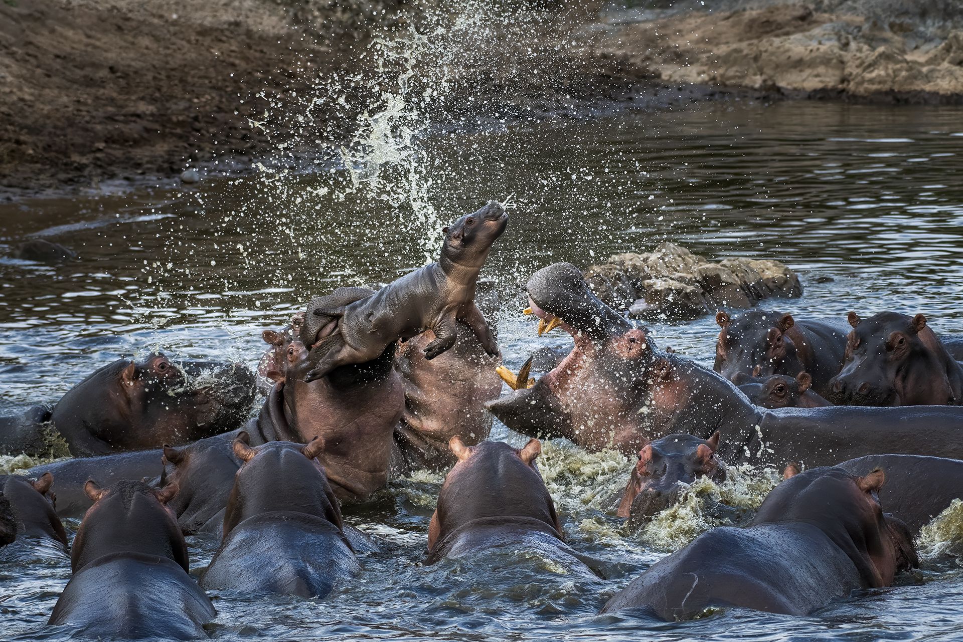 Борьба за территорию не редкое событие этих крупных животных. Как всегда крайними оказываются слабые или дети. Это происходит в природе и мы не праве вмешиваться в этот естественный отбор животного мира.
