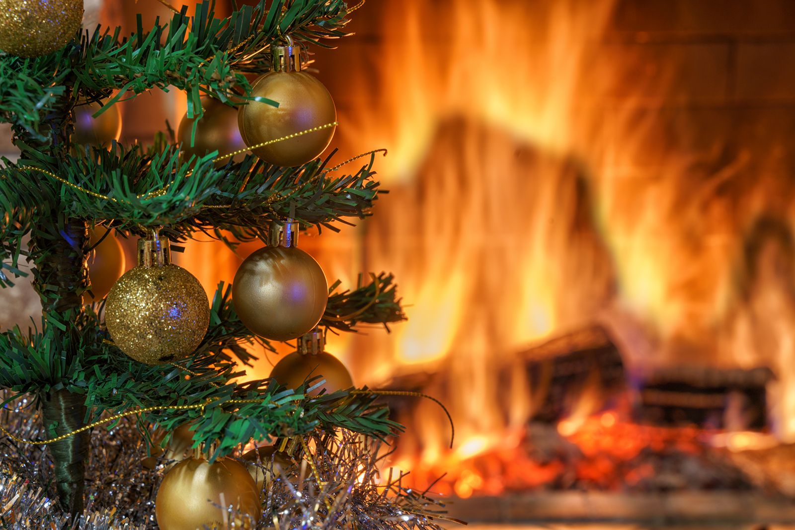 Новый год,Камин, огонь, елка, , Лариса Дука