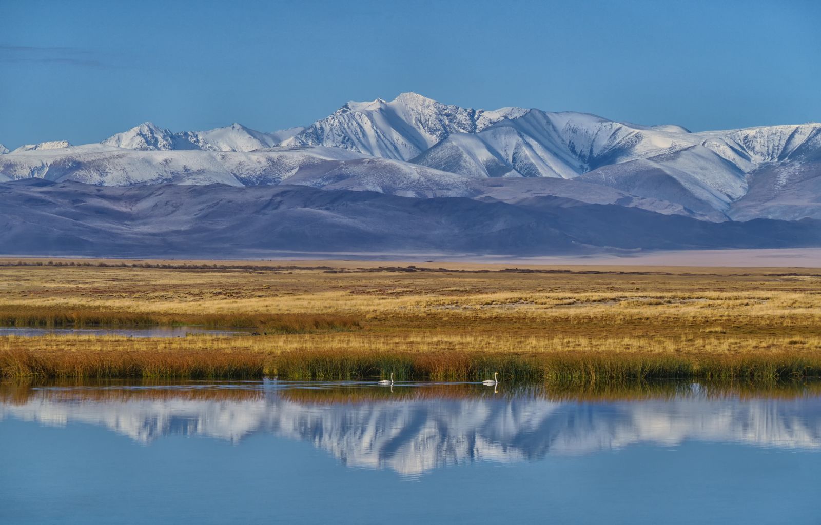 Россия, Алтай,озеро, лебеди, отражение, Лариса Дука