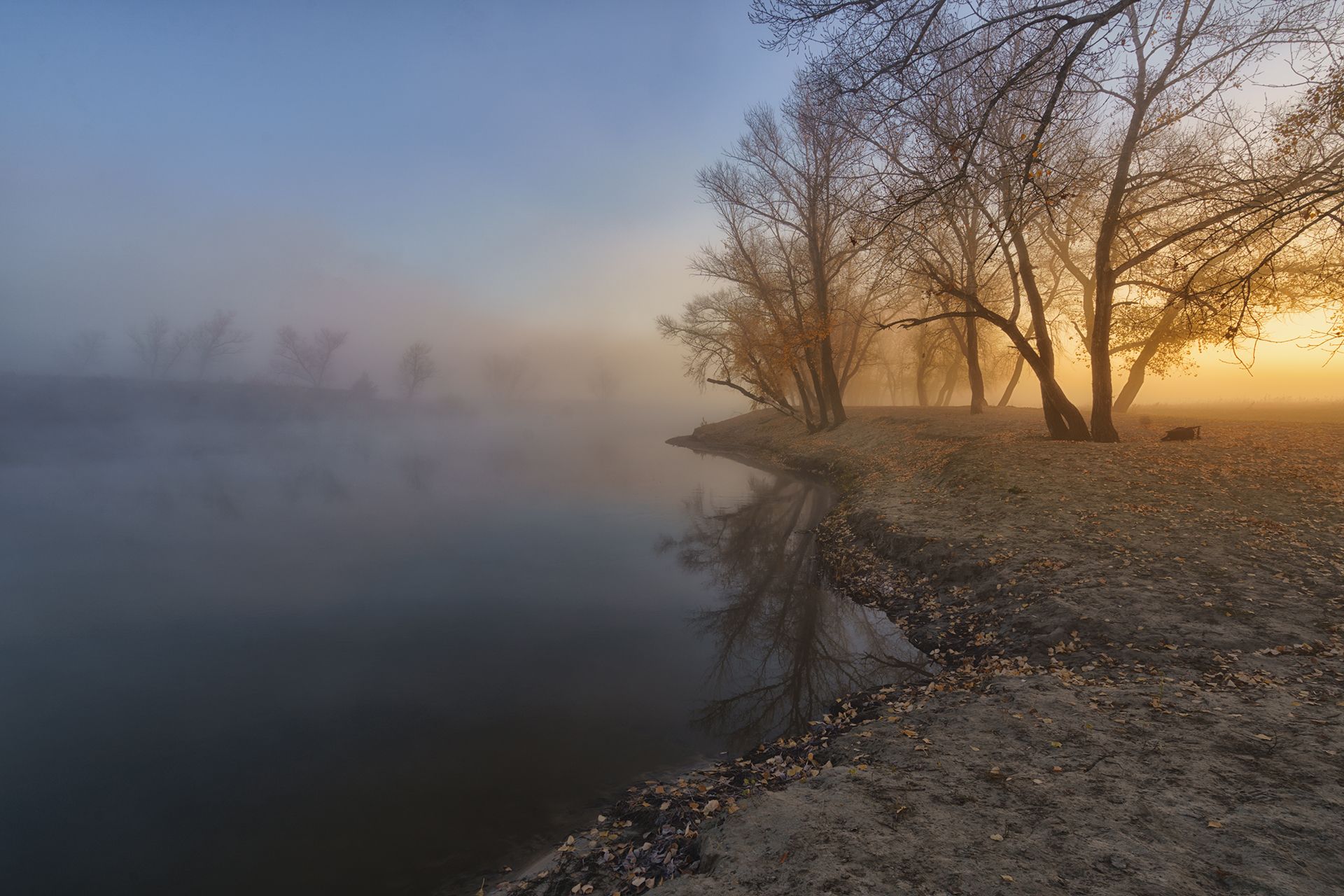 Россия,пейзаж,туман, утро, Тобол, река, осень, Лариса Дука