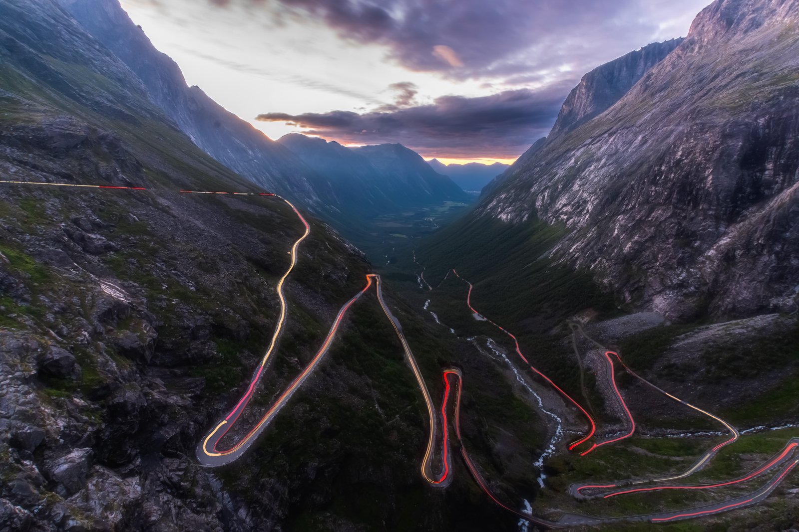 лестница троллей, пейзаж, трассеры, дорога, извилистая, пейзаж, ночь, закат, Норвегия , Лариса Николаевна Дука
