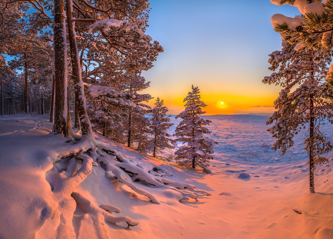 ладожское озеро, берег, мороз, закат, зима, ленинградская область, сосна, корни, лес, дерево., Лашков Фёдор