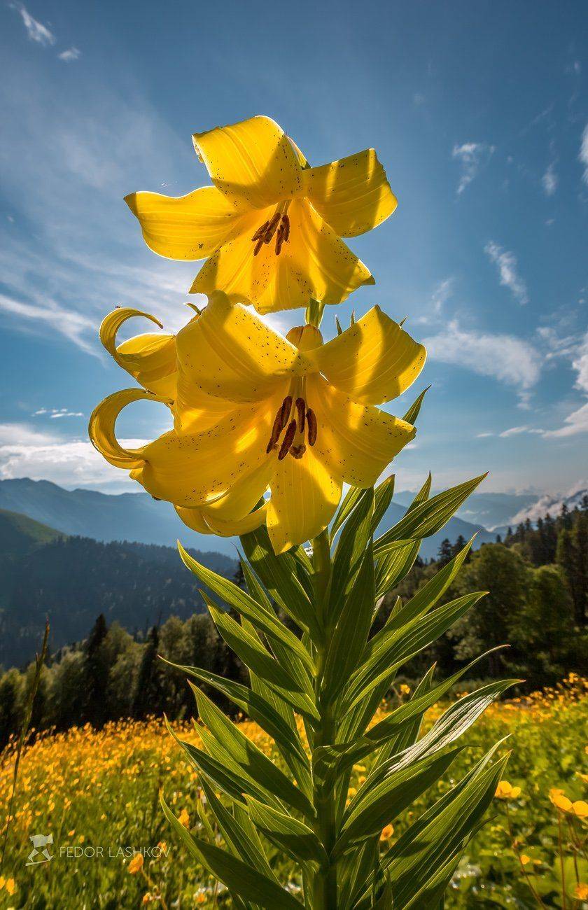 Цветёт на альпийских лугах в горах Абхазии лилия Кессельринга.