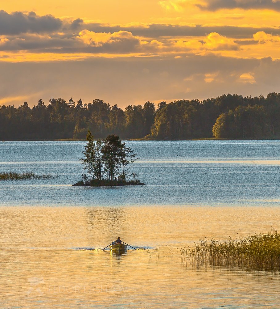 ленинградская область, закат, лотка, плавание, остров, вуокса, озеро, сосна, отдых, лето,, Лашков Фёдор