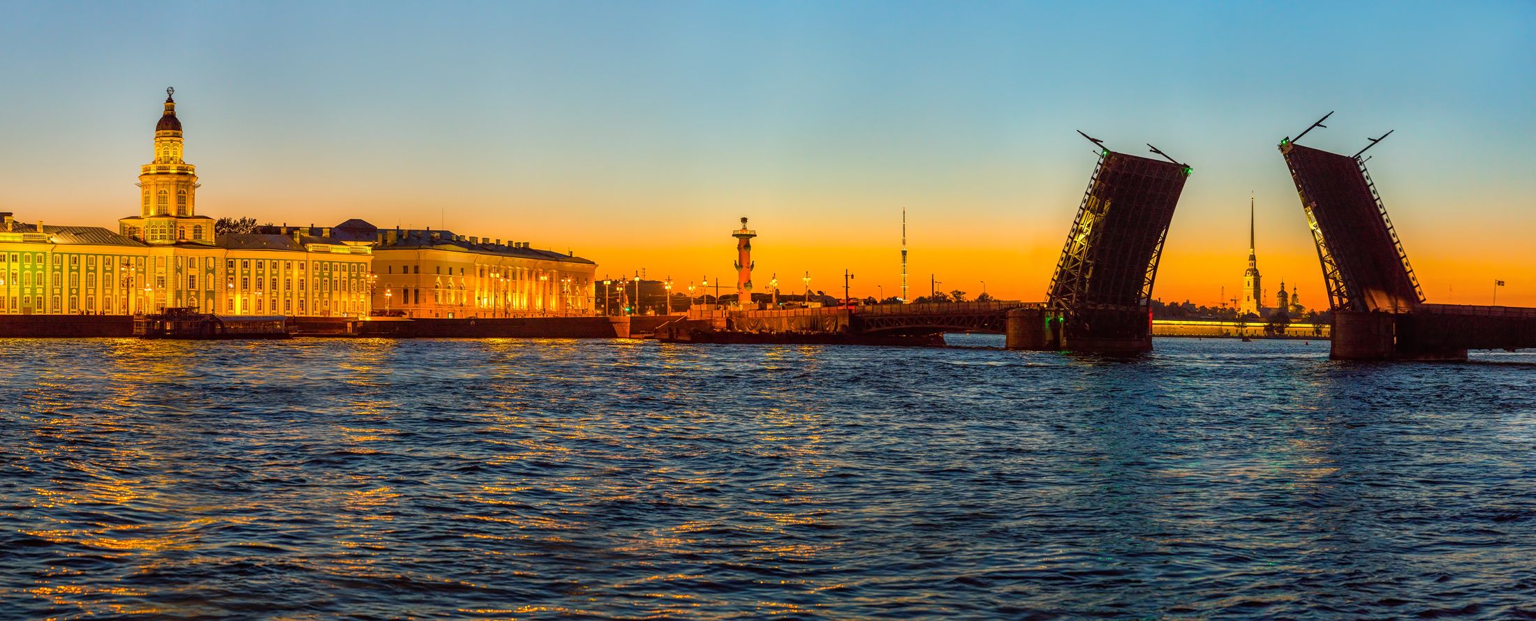 Яркая радуга во время дождя; стройный шпиль Петропавловской крепости; краски белых ночей, наполненные золотым свечением фонарей.