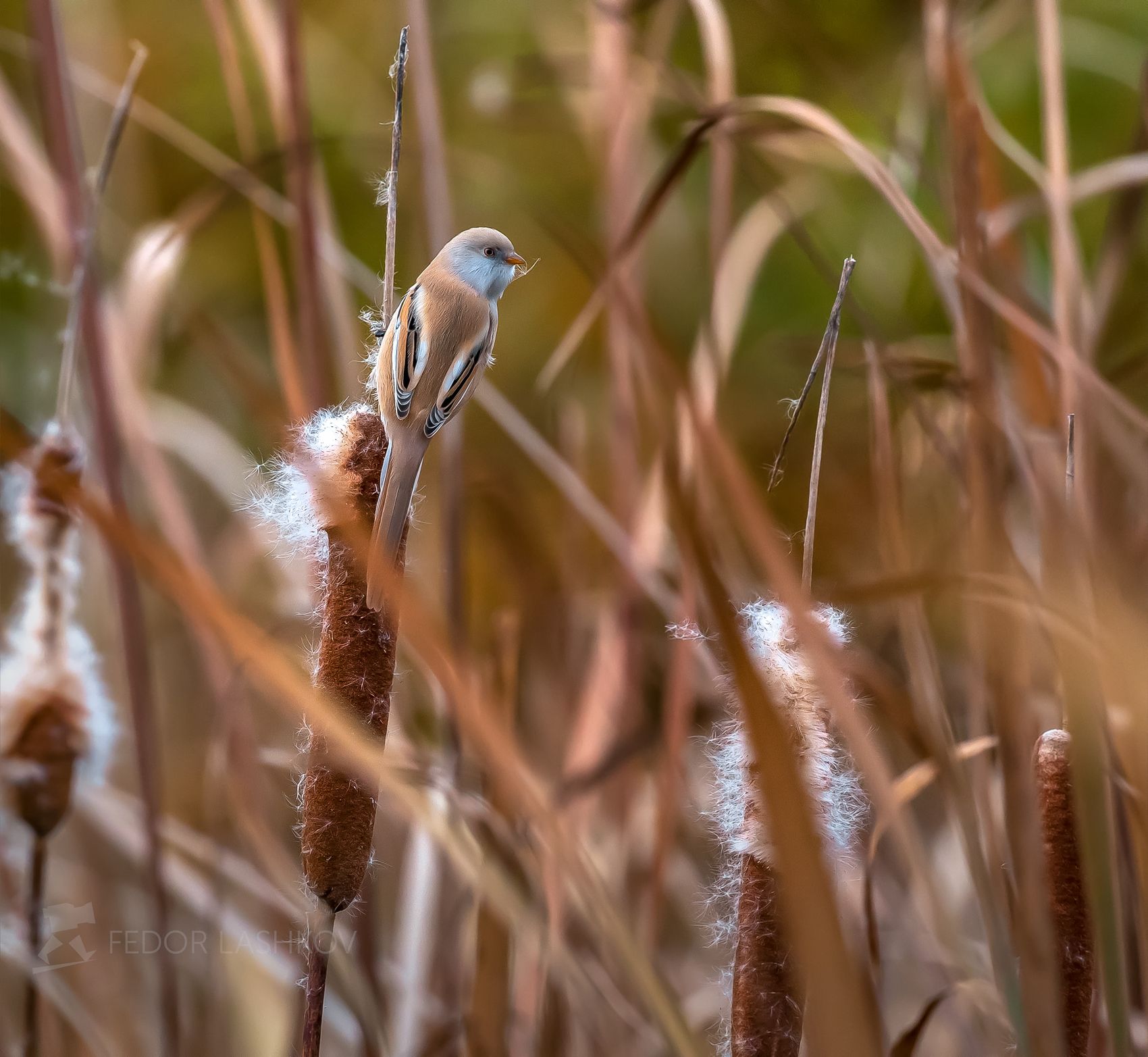 Усатая синица (лат. Panurus biarmicus). Астраханский биосферный заповедник. Октябрь, 2021 г. Из фотопроекта "Дельта Волги».