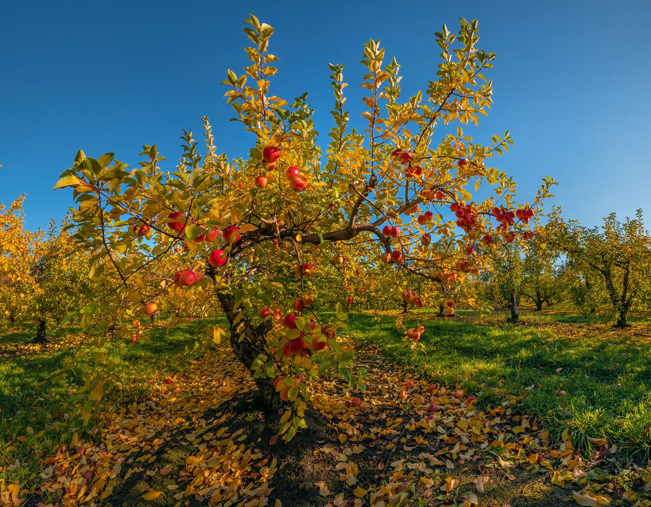 Вкусный запах осенних яблок, после жаркого октябрьского дня. ООО Агроном Сад. Лебедянский район, Липецкая область.