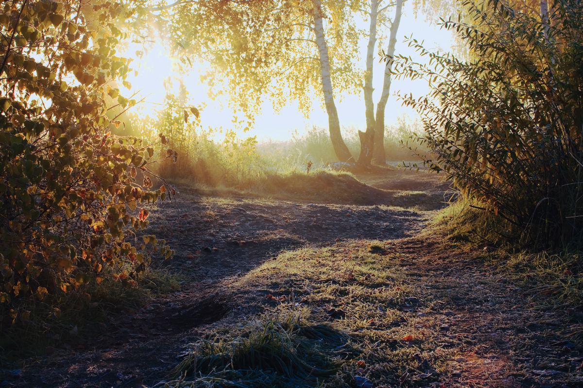 пейзаж, утро, осень, мороз, луч, солнце, sergey