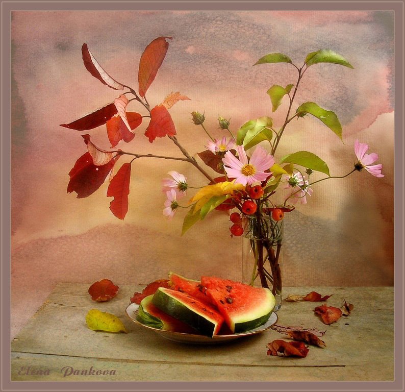 натюрморт, осень, листья, арбуз, Elena Pankova