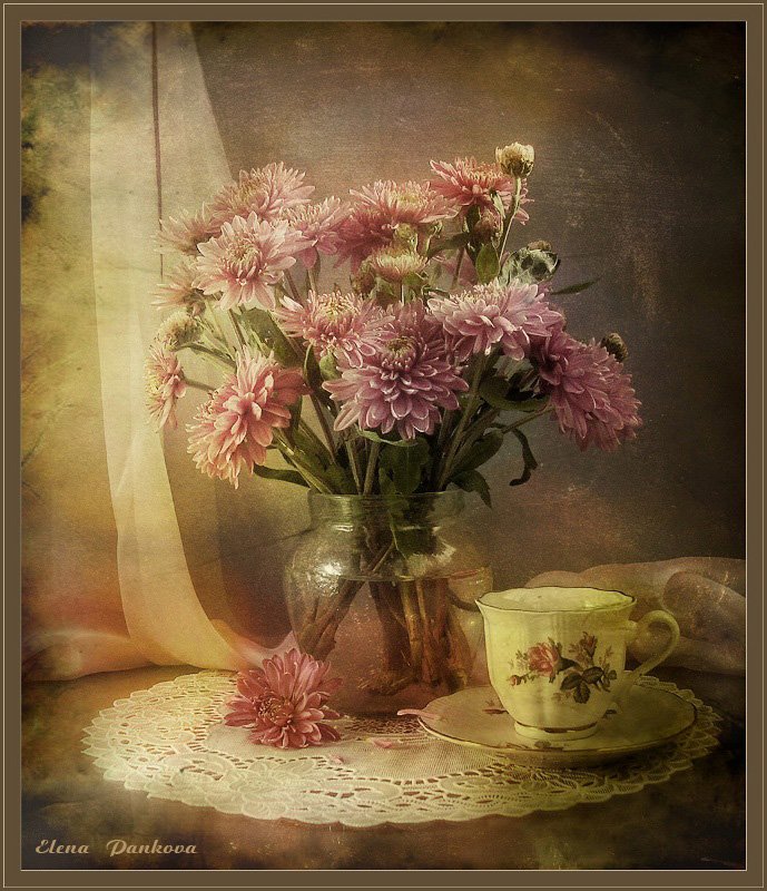 хризантемы, чашка, кофе, ретро, Elena Pankova