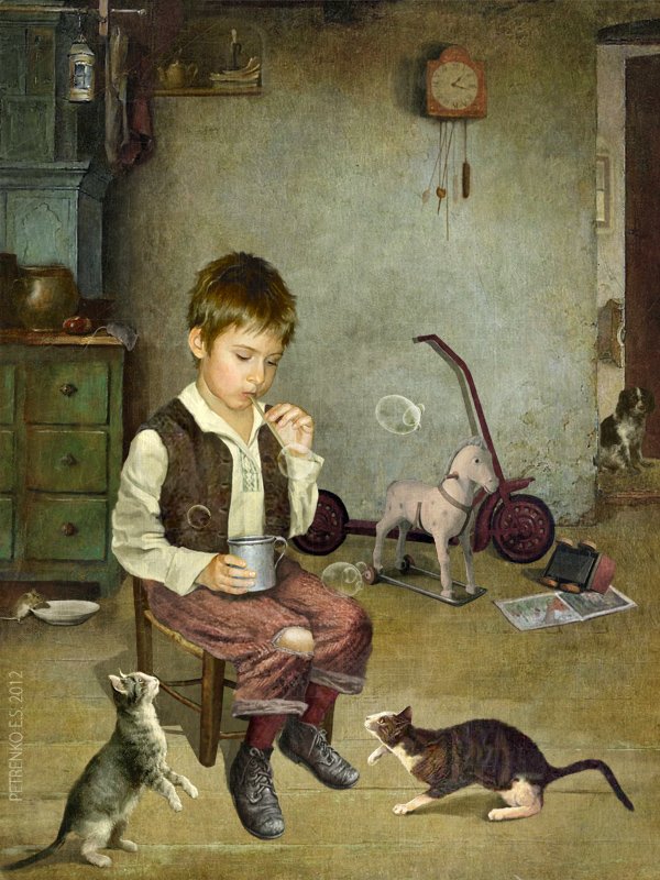 ну я не специалист в композиции, но некий диссонанс мой взгляд улавливает. Просто я вижу, что размеры мальчика,не вписываются в размеры комнаты. Не сильно, но заметно.