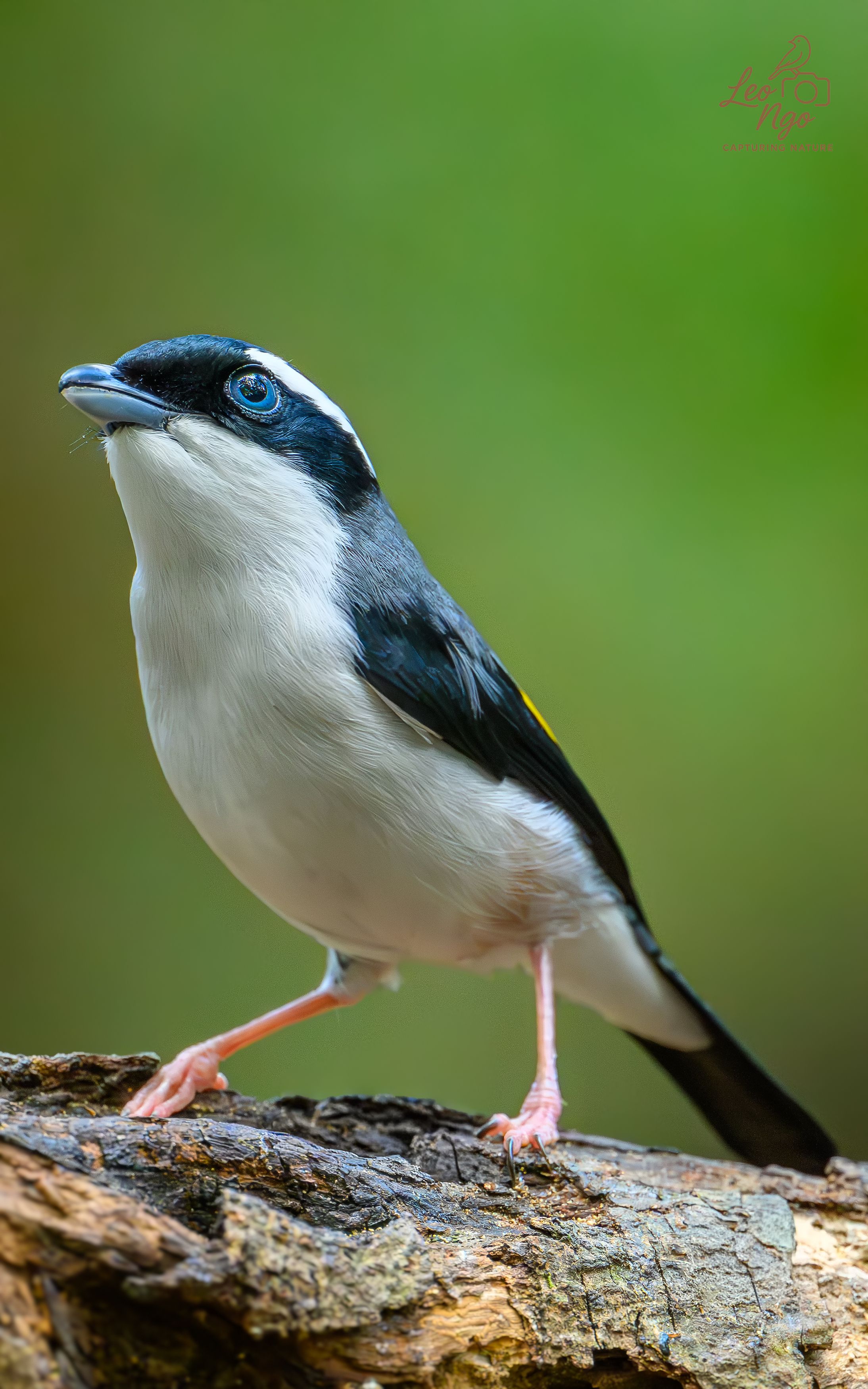 Sharp eye, clean contrast — bird stands out with that pop of blue and crisp white against the soft green. Good focus, natural light.