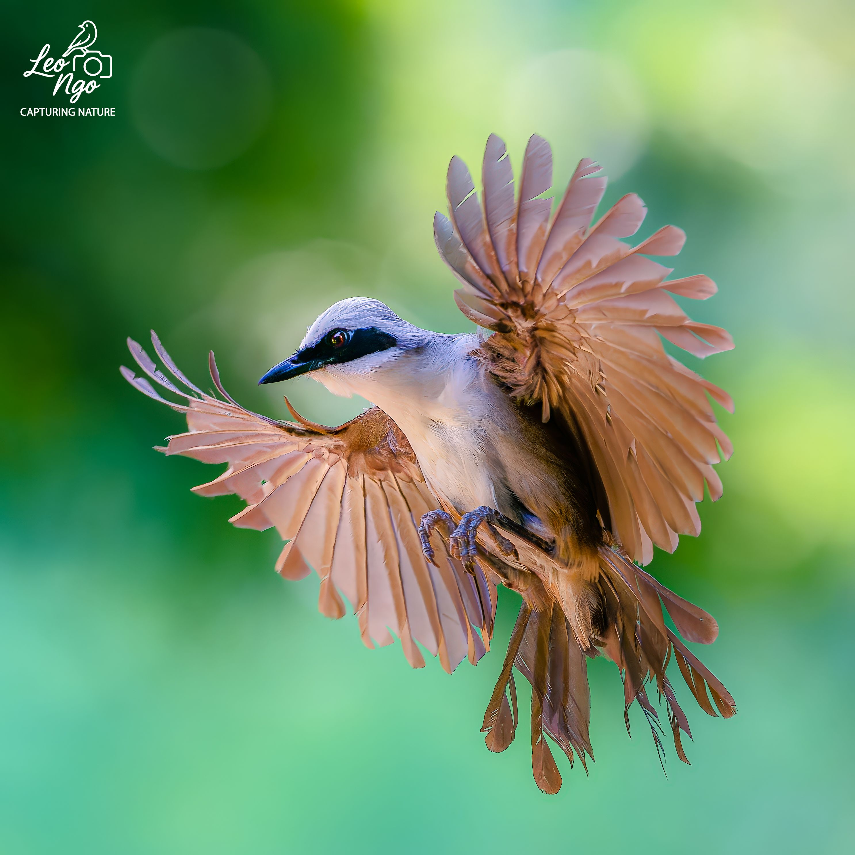 В кадре — мгновение, когда птица, словно в танце, раскрывает крылья в ярком свете. Зелёный боке фона подчёркивает динамику и чистоту момента. Фотограф Лео Нго запечатлел не просто полёт, а живое дыхание природы — хрупкое, мощное, вдохновляющее. Каждый перышко, каждая тень — часть симфонии жизни, застывшей в кадре. Это не просто снимок — это призыв замереть и увидеть красоту, которую мы часто пропускаем.