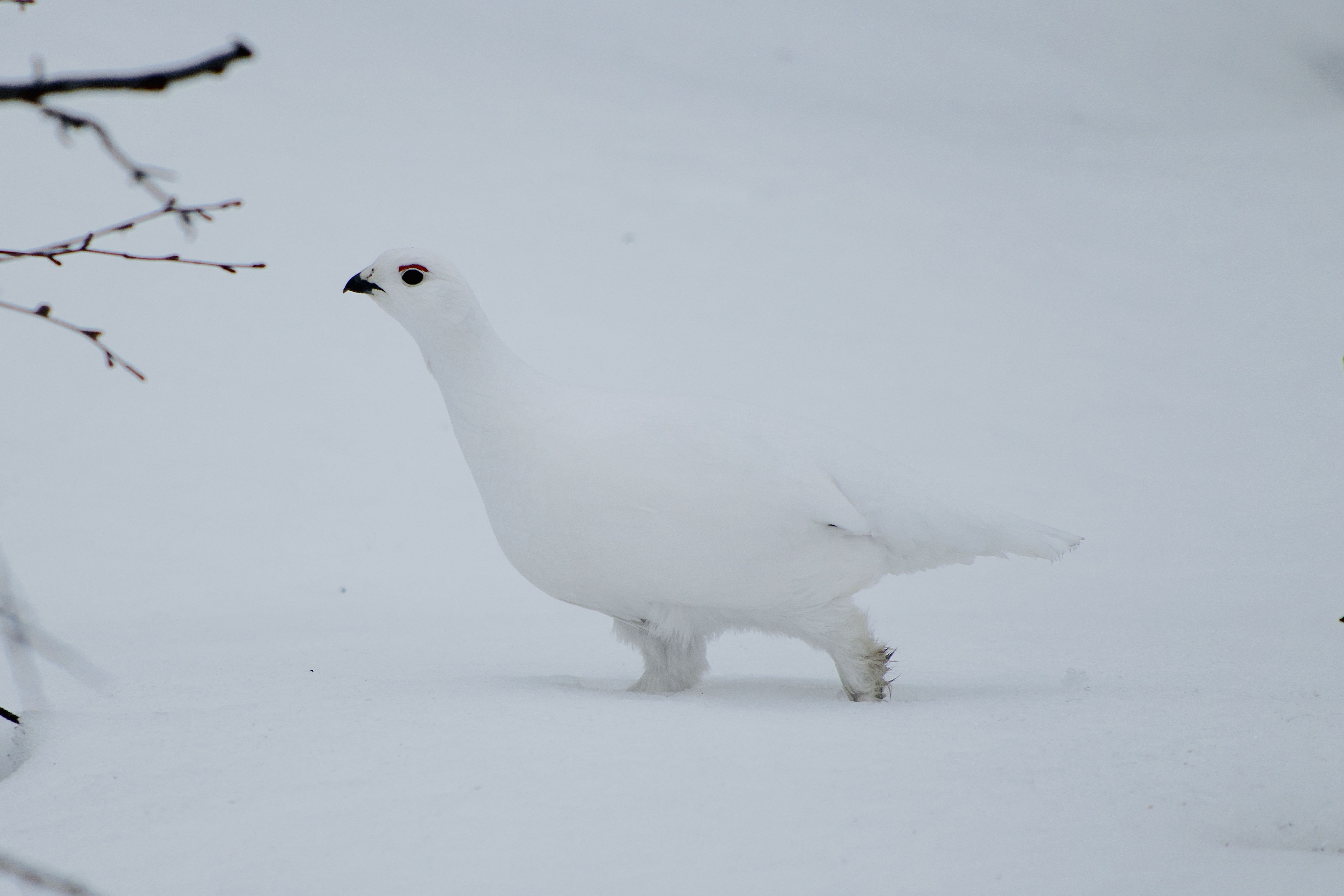 Белая куропатка на белом снегу. Если бы она не перебежала тропинку прямо передо мной, я бы ее никогда не заметил, - чудо камуфляжа.