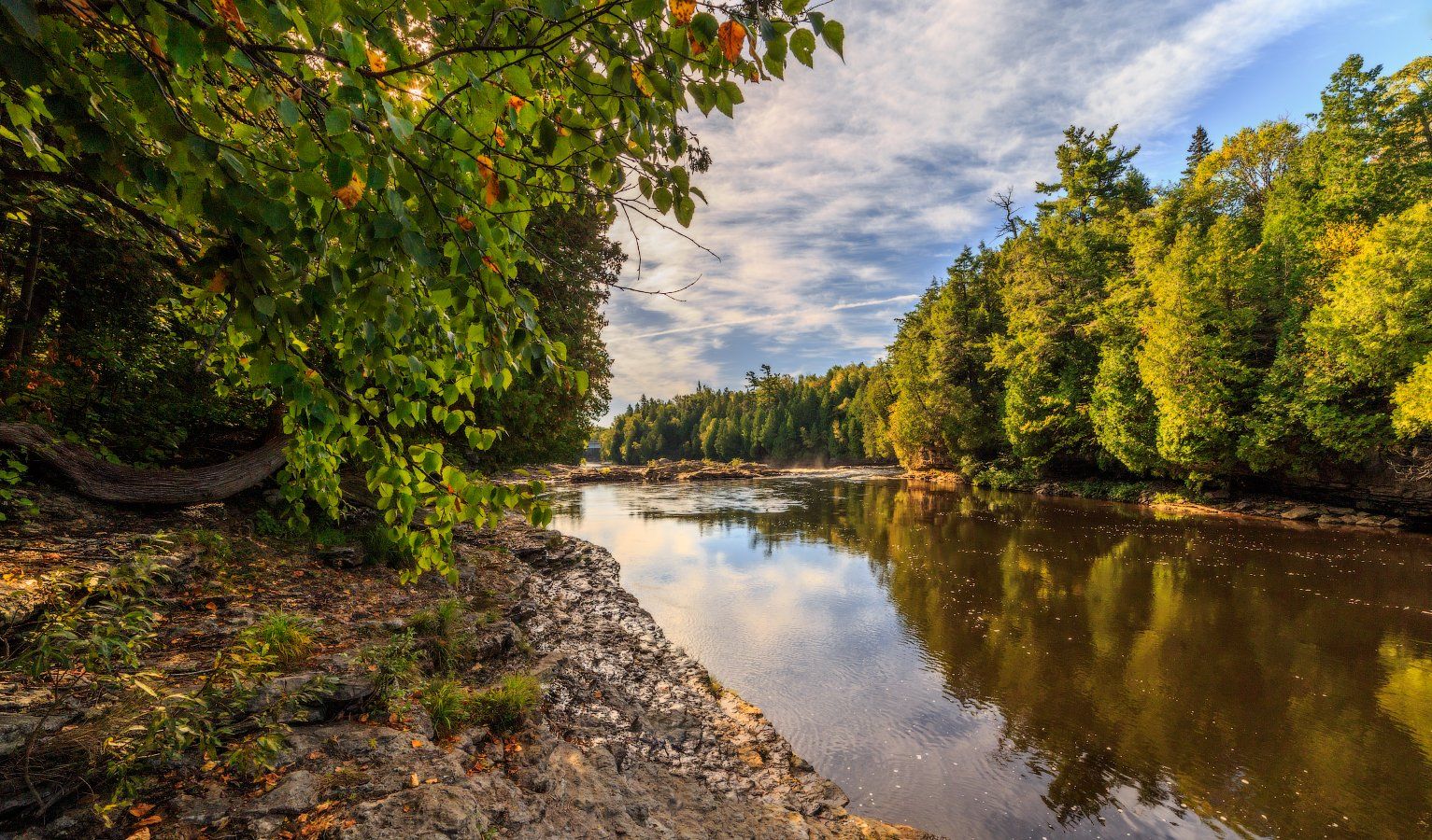 В этом месте все спокойно, за скалами приличный порог, http://leos1951.35photo.ru/photo_1448295/#author/1448295, метров 800 дальше водопад около 80 метров :)