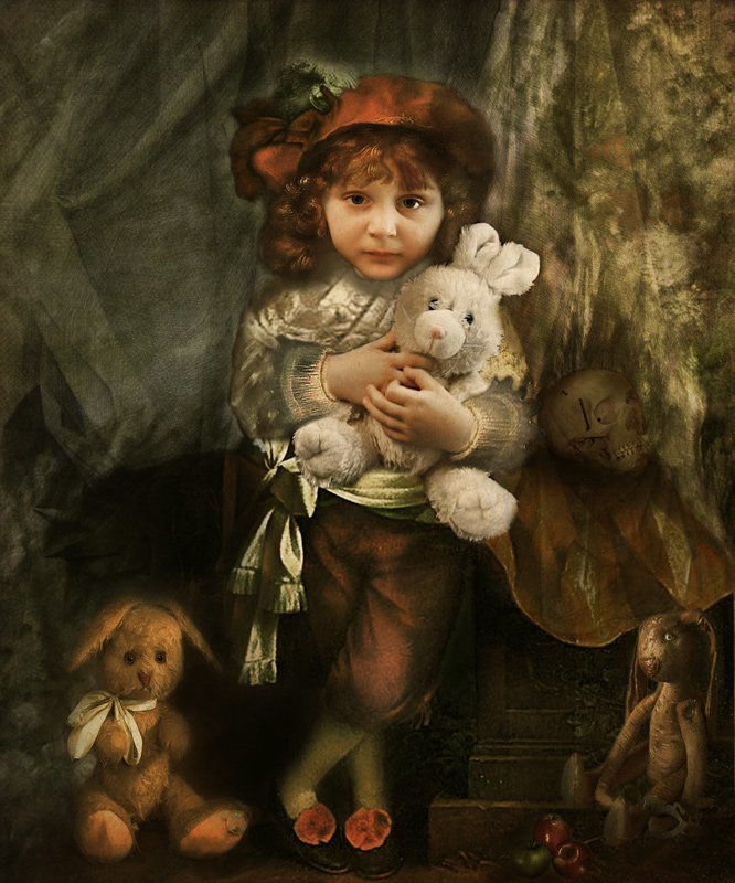 За основу этой работы была взята эта фотография моего младшего брата-http://www.pentaxnews.ru/photogallery/black/photo50451.htm , потом придумана композиция, подобраны детали одежды и интерьера и все вместе собрано