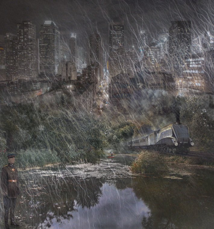 Мне кажется, что если дым уходит влево, то и капли дождя должны быть направлены налево (если это дождь).