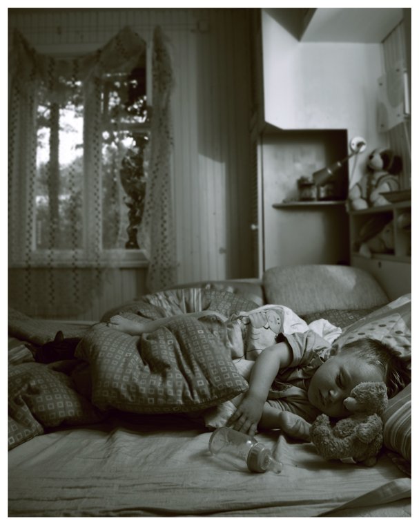 Просто мне кажется, что верх необходим в горизонтали- это просто спящий ребенок, а с верхом создается впечатление, что мы видим ребенка глазами матери заглянувшей в комнату.