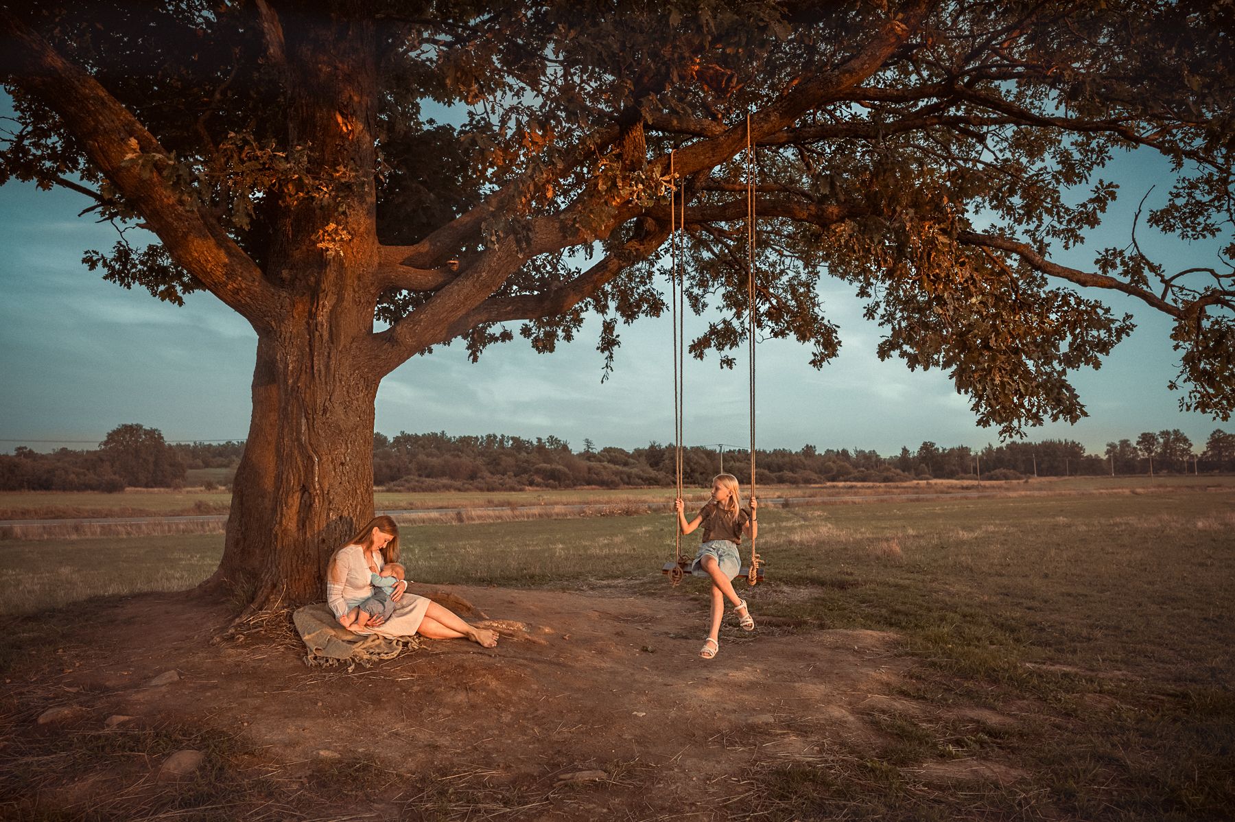 кормление, мать, дитя, ребенок, мама, нежность, семья, любовь, качели, закат, Ольга Алейнер