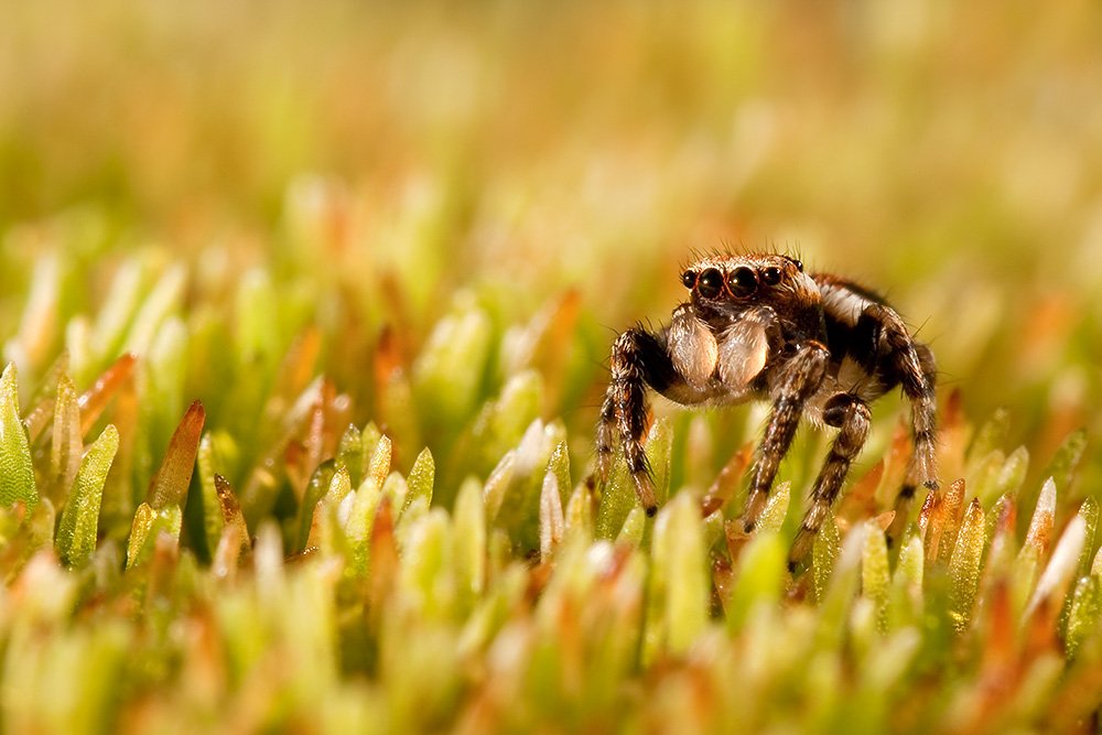 осень, мох, скакун, паук, макро, Linas T