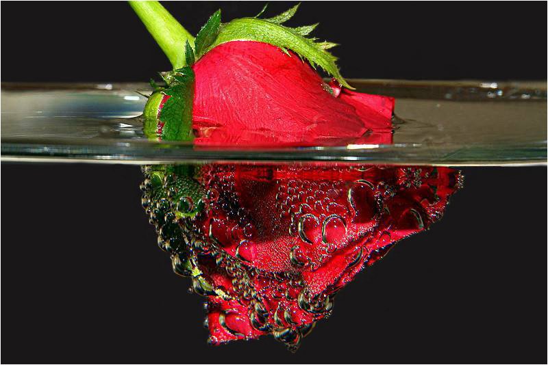 Все очень просто. В стеклянную прозрачную круглую вазу наливаю литров пять газированной воды. Опускаю туда цветы. Снимаю через стекло.Блики убираю в ФШ. Попробуйте и Вы. Удачи!