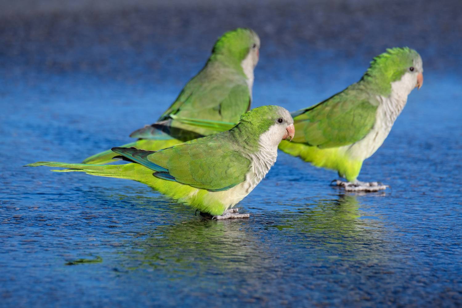Стайка попугаев прилетела в поисках воды...
