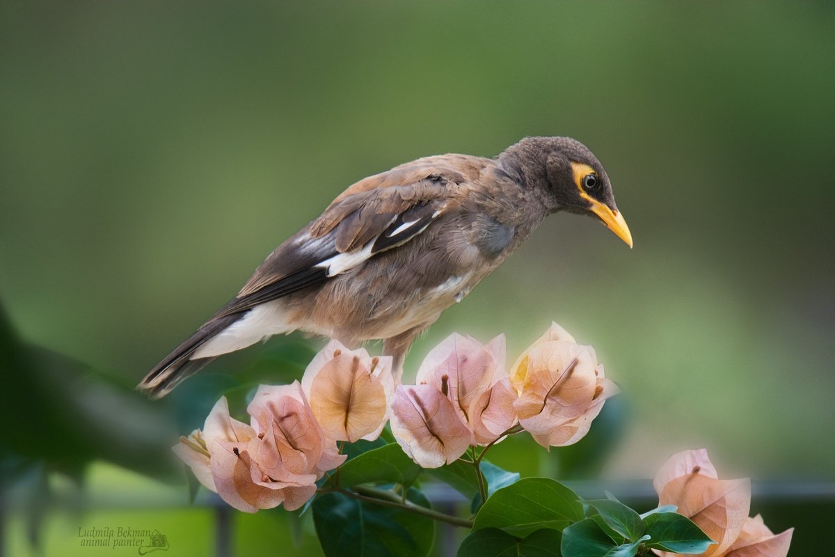 майна, утро, бугевиллия, Людмила Бекман