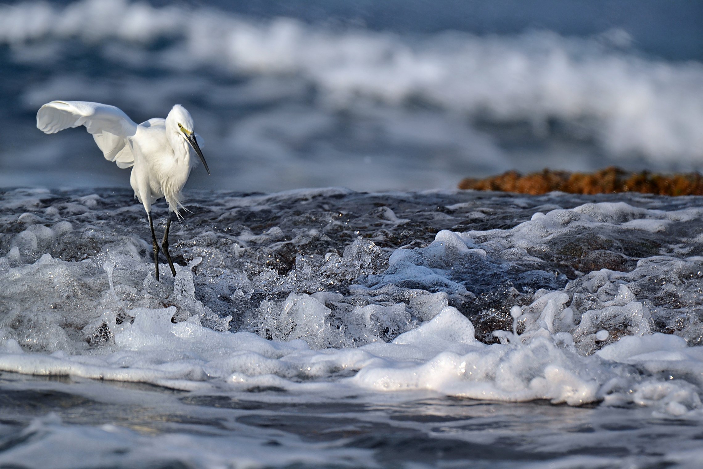 чуть правее ног цапли, это лёд или пена?