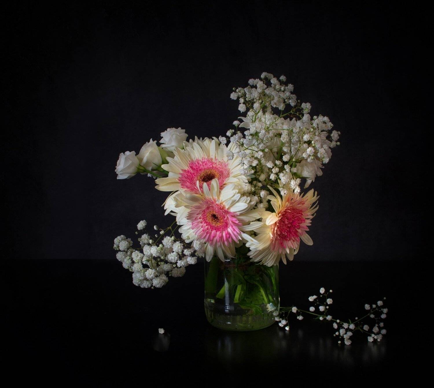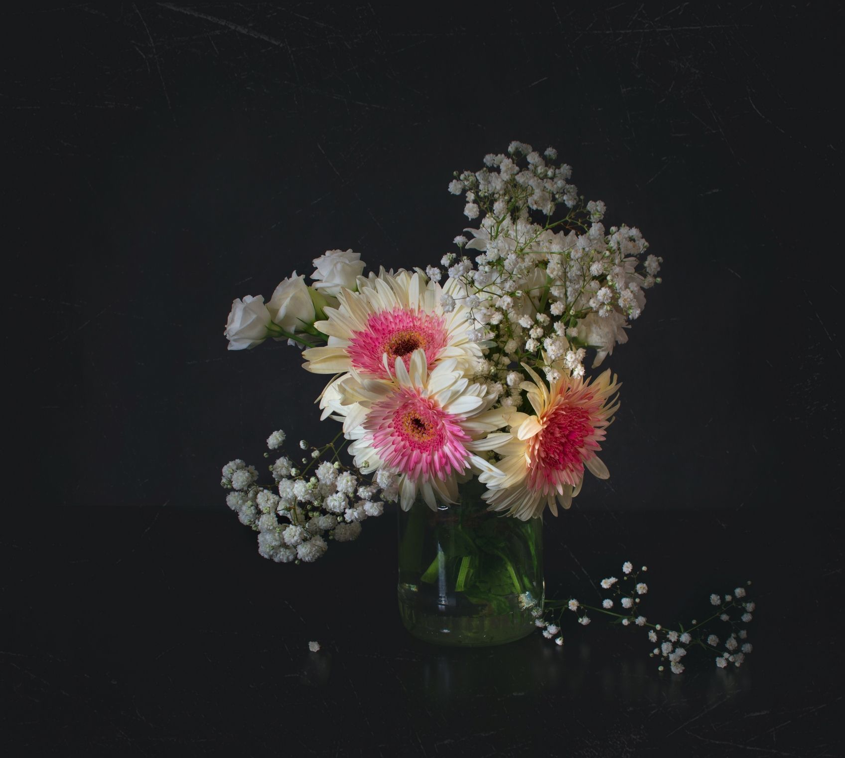 У меня, если душа поет, то - хорошо., но это бывает не всегда) А букет нравится и как он контрастирует с фоном. Может, банальное, - сверху подрезать и добавить, на поверхность положить слева что-то, чтобы заполнить... ( это все - личные ощущения, чтобы поделиться впечатлением из добрых побуждений всего лишь...)