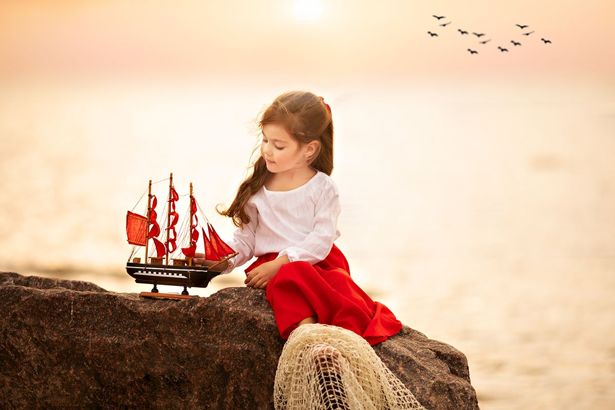 Не знаю, сколько пройдёт лет, но однажды настанет день, когда расцветёт одна сказка, памятная надолго. Однажды утром в морской дали под солнцем сверкнёт алый парус. Сияющая громада алых парусов белого корабля двинется, рассекая волны, прямо к тебе. Тихо будет плыть этот чудесный корабль, без криков и выстрелов; на берегу много соберётся народу, удивляясь и ахая: и ты будешь стоять там. Корабль подойдёт величественно к самому берегу под звуки прекрасной музыки; нарядная, в коврах, в золоте и цветах, поплывет от него быстрая лодка...