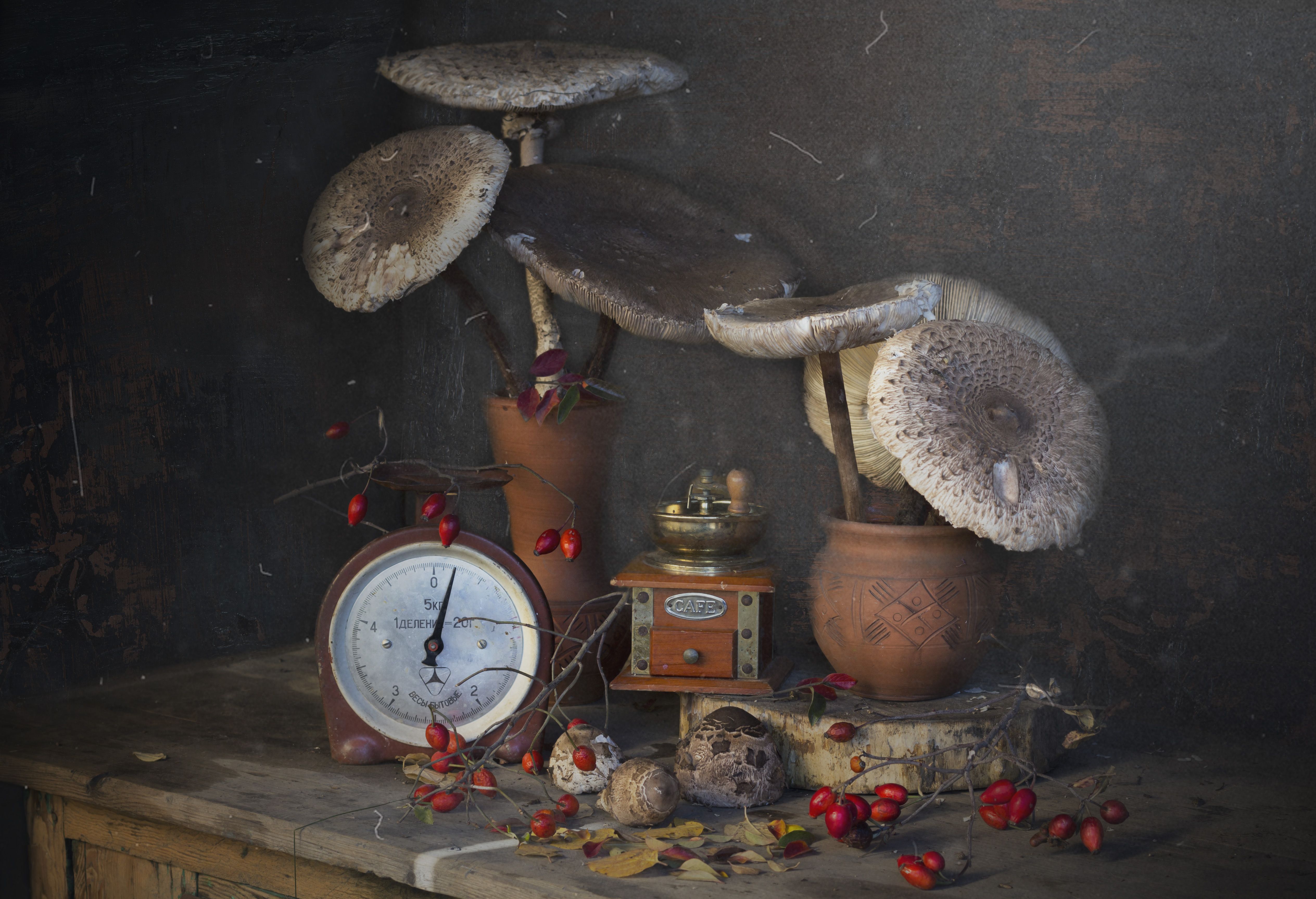 грибы,большие, кувшин, кофемолка, шиповник, весы, Зимина Лионелла