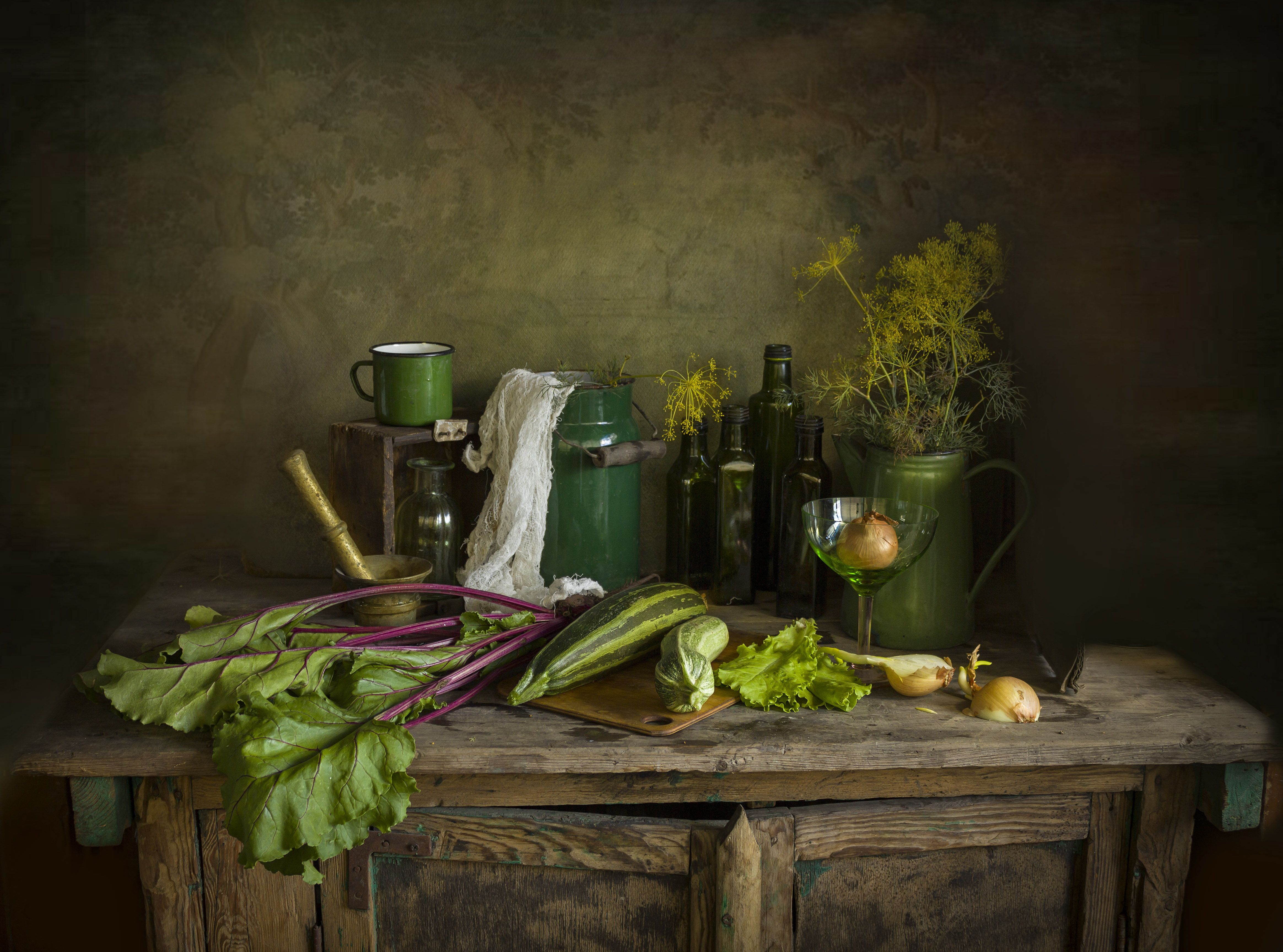 кабачок,свекла, лук, бутылки, чайник, ступка,ретро, винтаж, Зимина Лионелла
