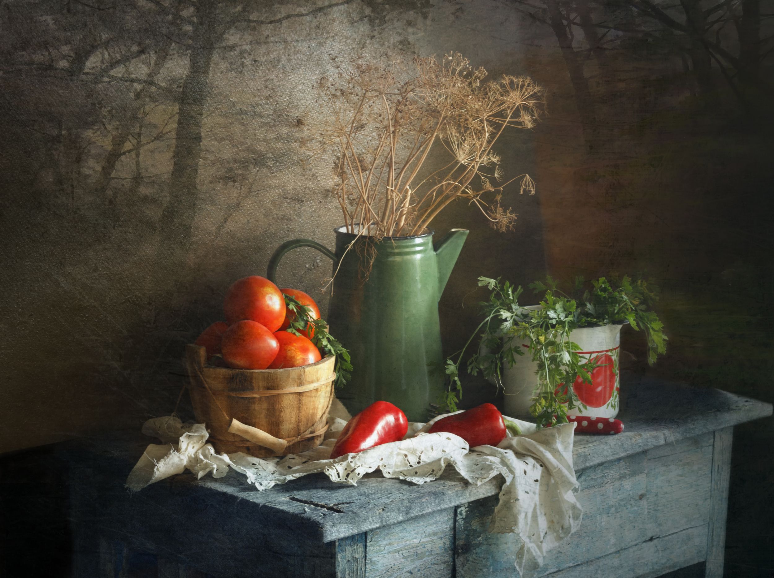 натюрмортовощитыковкиосенькувшинлукпомидоры