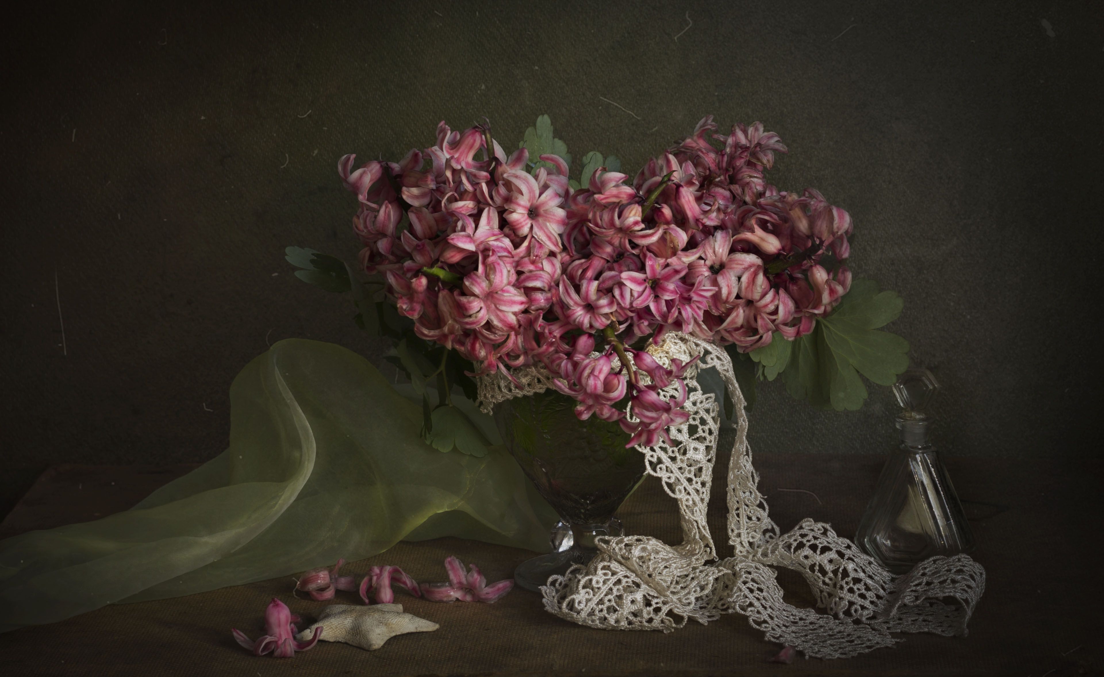 цветывеснарозовые гиацинтынатюрморт