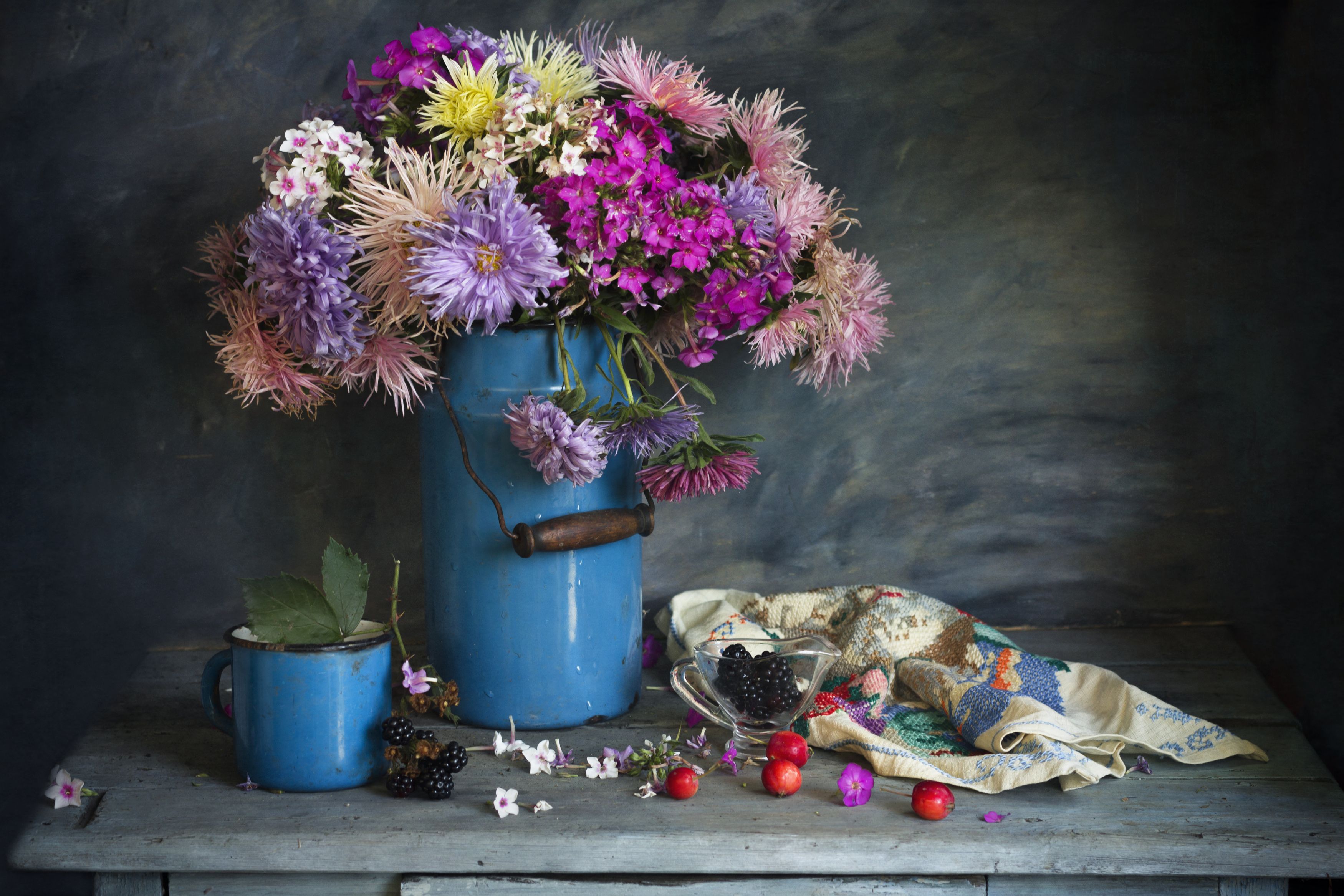 букет цветов, ягоды, натюрморт, лето, вышивка, Зимина Лионелла